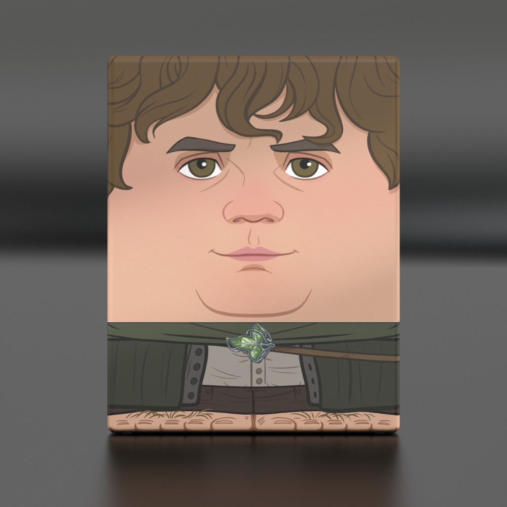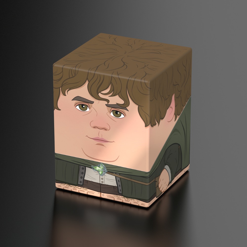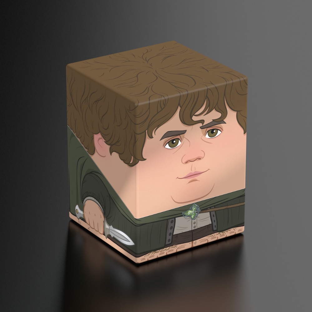 Collectible box for storing TCG decks, tabletop gaming accessories, and/or collectibles. The Sam Squaroe from the The Lord of the Rings edition holds up to 100 cards in double protective sleeves if used as a deck box. Squaroes are made from 78% renewable resources and fit perfectly into the separately available Collectors Case.