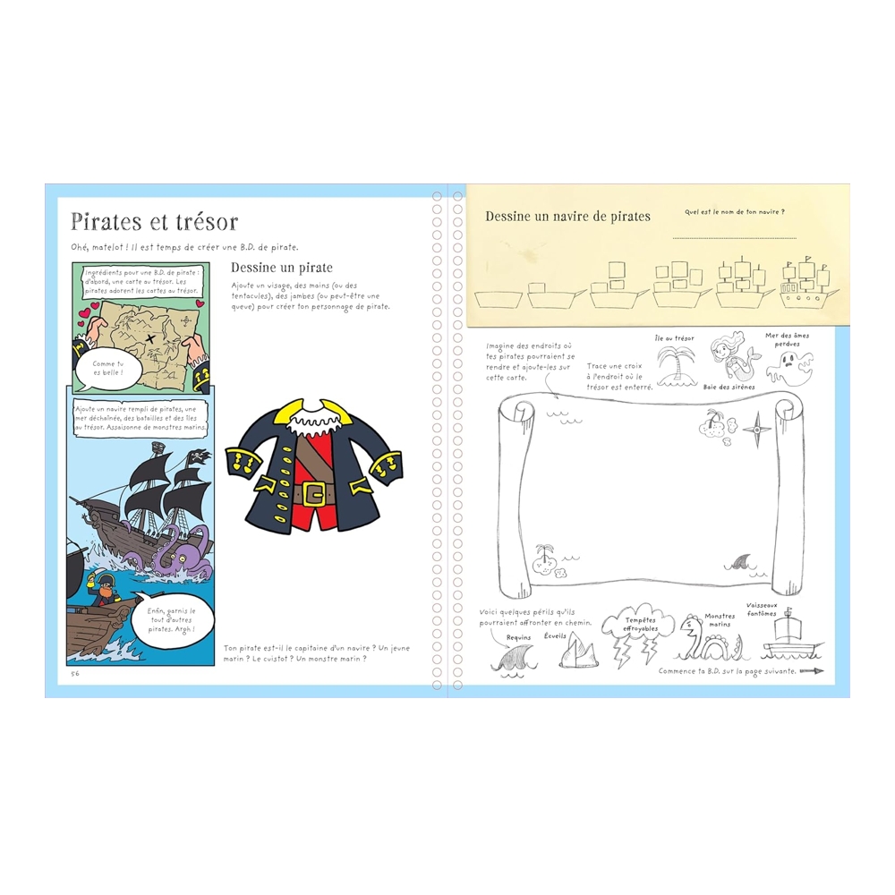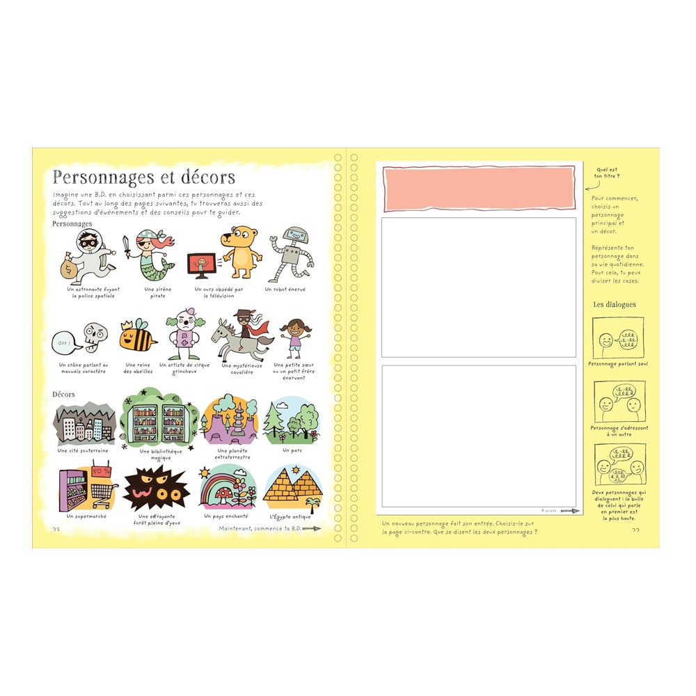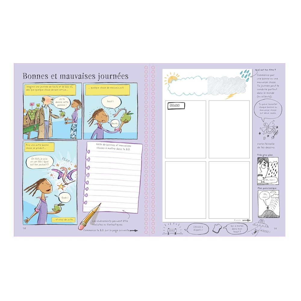 Des astuces et des activités pour apprendre à réaliser des bandes dessinées. Des instructions détaillées, des techniques et des conseils de professionnels sont fournis pour créer les personnages et construire une histoire dans les espaces prévus.