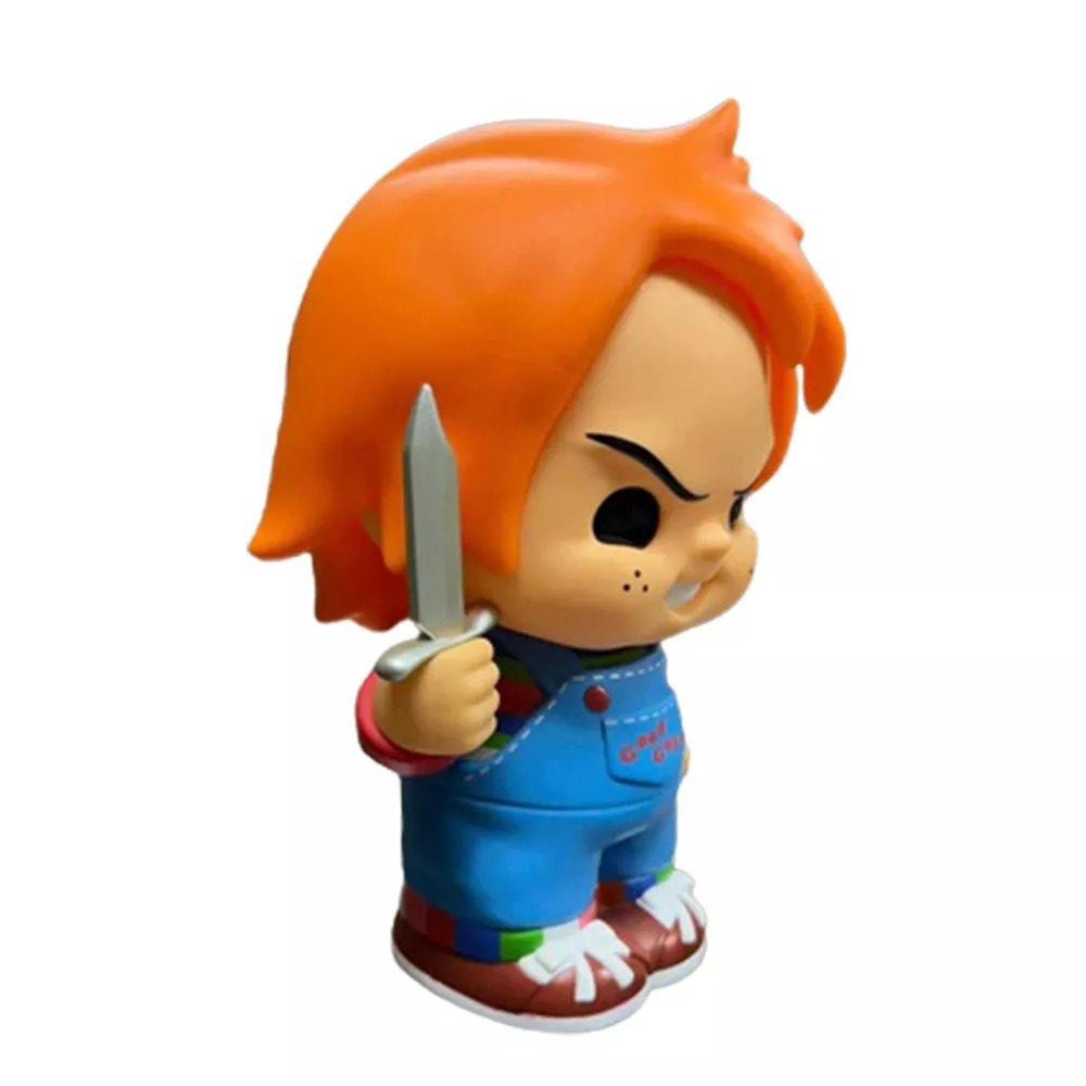 Directement tirée de la franchise horrifique Child's Play, cette tirelire Chucky est prête à garder ta petite monnaie… avec son sourire glaçant et son arme en main ! La tirelire figurative en PVC Child’s Play Chucky comprend une fente pour pièces à l’arrière et un bouchon en plastique facile à retirer à la base. Elle mesure environ 20 cm de haut. Ne passe pas à côté de cette pièce terrifiante et ajoute-la à ta collection d’objets d’horreur !