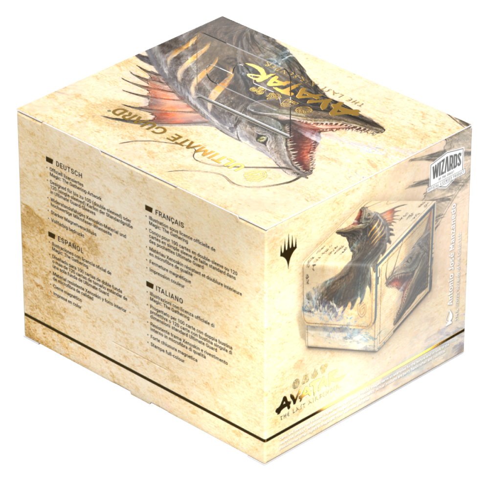 Le Sidewinder 100+ Xenoskin est une boîte de deck TCG de haute qualité qui offre une protection de carte premium grâce à son matériau Xenoskin résistant, sa doublure intérieure en microfibre et sa fermeture magnétique puissante, tout en permettant un accès facile et pratique au deck à l’intérieur. Les boîtes de deck sont imprimées en couleur avec des illustrations sous licence officielle de L'extension de Magic : The Gathering, « Avatar, le Dernier Maîte de l'Air ». Le Sidewinder 100+ Xenoskin est optimisé pour contenir 100 cartes à double pochette ou 120 cartes à pochette simple dans les pochettes Ultimate Guard.