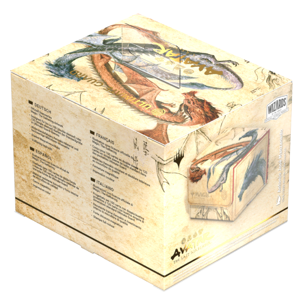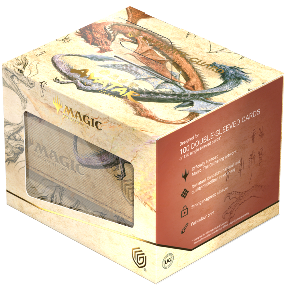 Le Sidewinder 100+ Xenoskin est une boîte de deck TCG de haute qualité qui offre une protection de carte premium grâce à son matériau Xenoskin résistant, sa doublure intérieure en microfibre et sa fermeture magnétique puissante, tout en permettant un accès facile et pratique au deck à l’intérieur. Les boîtes de deck sont imprimées en couleur avec des illustrations sous licence officielle de L'extension de Magic : The Gathering, « Avatar, le Dernier Maîte de l'Air ». Le Sidewinder 100+ Xenoskin est optimisé pour contenir 100 cartes à double pochette ou 120 cartes à pochette simple dans les pochettes Ultimate Guard.