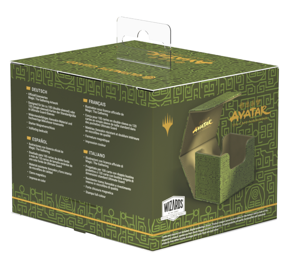 Le Sidewinder 100+ Xenoskin est une boîte de deck TCG de haute qualité qui offre une protection de carte premium grâce à son matériau Xenoskin résistant, sa doublure intérieure en microfibre et sa fermeture magnétique puissante, tout en permettant un accès facile et pratique au deck à l’intérieur. Les boîtes de deck sont imprimées en couleur avec des illustrations sous licence officielle de L'extension de Magic : The Gathering, « Avatar, le Dernier Maîte de l'Air ». Le Sidewinder 100+ Xenoskin est optimisé pour contenir 100 cartes à double pochette ou 120 cartes à pochette simple dans les pochettes Ultimate Guard.