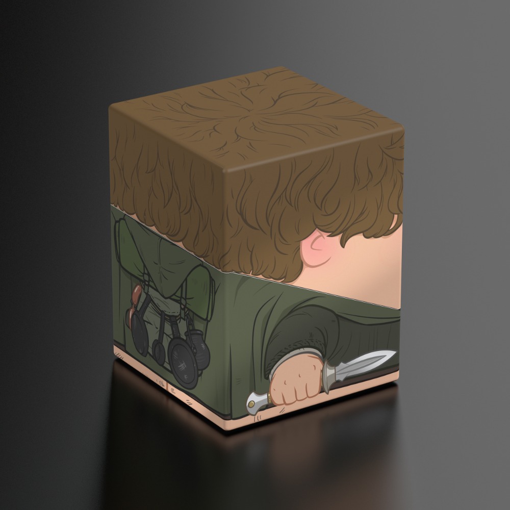 Boîte de collection pour ranger des decks de JCC, des accessoires de jeux de société et/ou des objets de collection. Le modèle Sam Squaroe, issu de l’édition Le Seigneur des Anneaux, peut contenir jusqu’à 100 cartes en double protection lorsqu’il est utilisé comme boîte à deck. Les Squaroes sont fabriquées à partir de 78 % de ressources renouvelables et s’intègrent parfaitement dans la Collector’s Case vendue séparément.