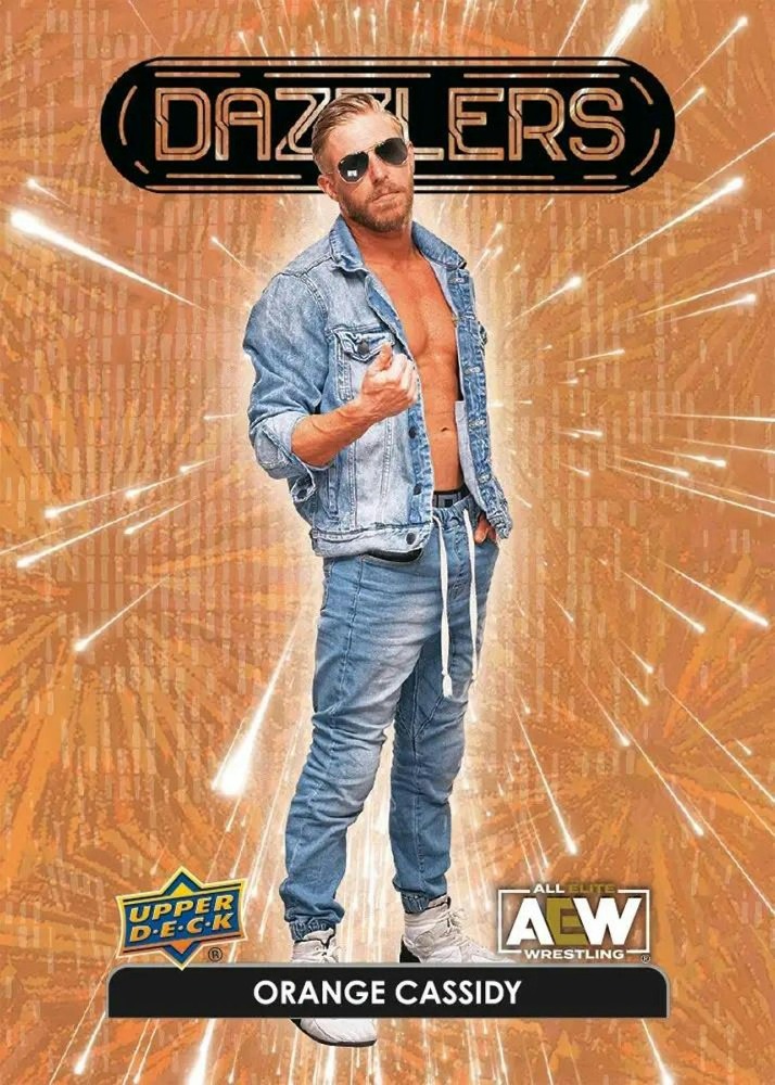 - Orange Dazzlers : des cartes spectaculaires mettant en vedette les plus grandes stars d’AEW – 1 par boîte en moyenne.