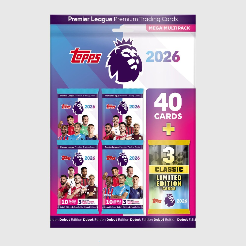 2025-26 SOCCER  -  TOPPS PREMIER LEAGUE DEBUT EDITION – MULTIPACK (40 CARDS + 3 LE)