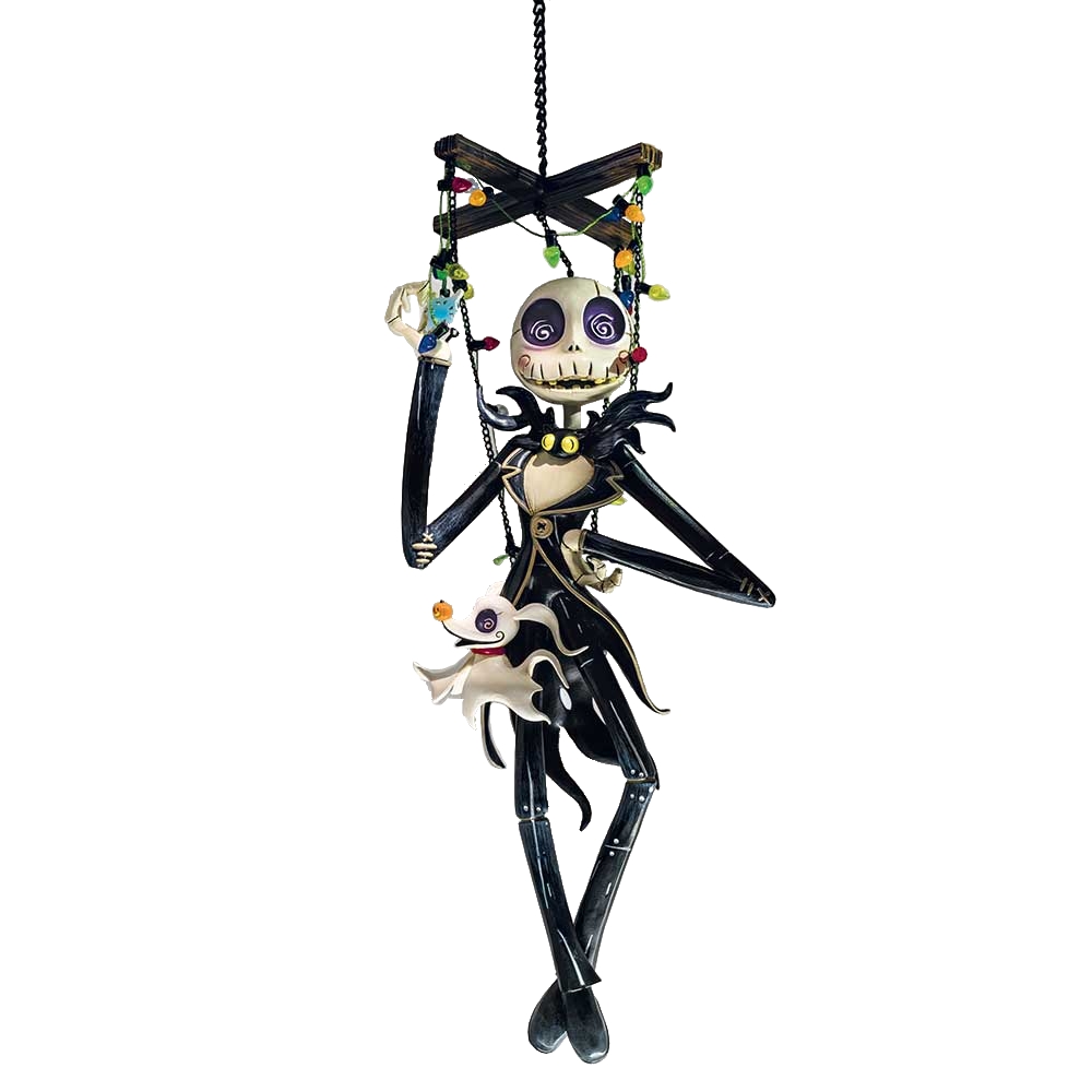 Sous licence Disney, chaque figurine de marionnette artistiquement stylisée de cette collection représente un citoyen différent de Halloween Town, moulée à la main en résine artistique et peinte à la main pour capturer chaque détail complexe de la tête aux pieds. Les couleurs authentiques sont rehaussées par une texture semblable à celle du bois sculpté et un éclat brillant, tandis que des lumières de Noël sculpturales colorées décorent les barres transversales et se déversent autour de chaque personnage. De plus, ces figurines de marionnettes stationnaires sont suspendues à une chaîne métallique et arrivent prêtes à être accrochées, ce qui les rend faciles à exposer dans votre décoration d'Halloween !