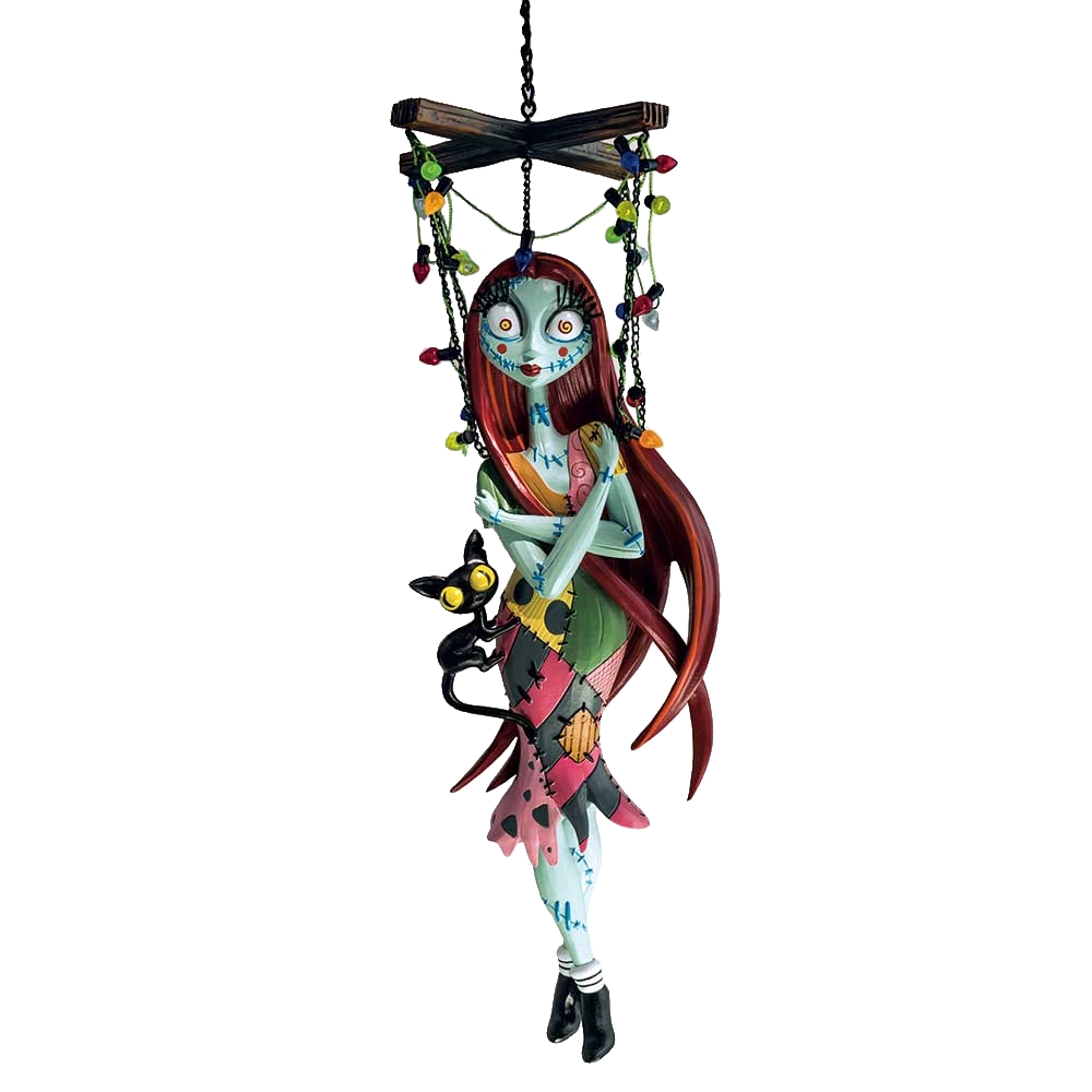 Sous licence Disney, chaque figurine de marionnette artistiquement stylisée de cette collection représente un citoyen différent de Halloween Town, moulée à la main en résine artistique et peinte à la main pour capturer chaque détail complexe de la tête aux pieds. Les couleurs authentiques sont rehaussées par une texture semblable à celle du bois sculpté et un éclat brillant, tandis que des lumières de Noël sculpturales colorées décorent les barres transversales et se déversent autour de chaque personnage. De plus, ces figurines de marionnettes stationnaires sont suspendues à une chaîne métallique et arrivent prêtes à être accrochées, ce qui les rend faciles à exposer dans votre décoration d'Halloween !