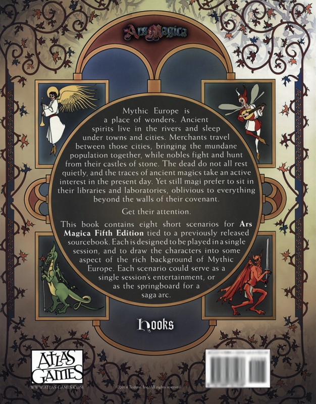 This book contains eight short scenarios for Ars Magica Fifth Edition tied to a previously released sourcebook. Each is designed to be played in a single session, and to draw thecharacters into some aspect of the rich background of Mythic Europe. Each scenario could serve as a single session's entertainment, or as the springboard for a saga arc.