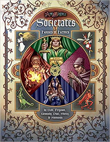 An Ars Magica Player's Sourcebook. The third and final volume in the Houses of Hermes series, Societates covers Houses Flambeau, Jerbiton, Tytalus, and Ex Miscellanea. These houses are formed of wizards who have come together out of shared interests and philosophies. House Flambeau includes the champions and knights of the Order, individual warriors who fight for glory and honor, both their own and that of the Order as a whole. The House admires bold adventurers who seek out and overcome fearsome opponents. Worthy opponents are chosen according to the magus's sense of honor, not external rules. As a result, many of the Order's Hoplites are from House Flambeau, as are many of the magi they hunt down.House Jerbiton live lives in pursuit of beauty, and in pursuit of living beautifully. This requires interaction with the world beyond the Order of Hermes, both for the sake of the beauty found there and to avoid the stunted lives that result from a life lived entirely within a covenant. Experts in the use of Mentem and Imaginem, followers of Jerbiton generally prefer to interact subtly with the world. The fall of Constantinople has, however, been a great shock to them, and has pushed the House onto a more active path. House Tytalus thrive on, and admire, conflict. The main conflict they see is between an individual's nature and the rules imposed by surrounding society, but this central conflict plays out in many, less abstract, contests. They are renowned for long-running rivalries with their Housemates, convoluted political schemes, and activities that skirt the edges of legality. House Ex Miscellanea gathers together magi who do not fit into any other House, normally because they are still tied to elements of a pre-Hermetic tradition. The House claims to embody unity in diversity, but the emphasis is definitely on the diversity. This book provides eight detailed examples of traditions within the House, complete with rules for their non-Hermetic abilities.