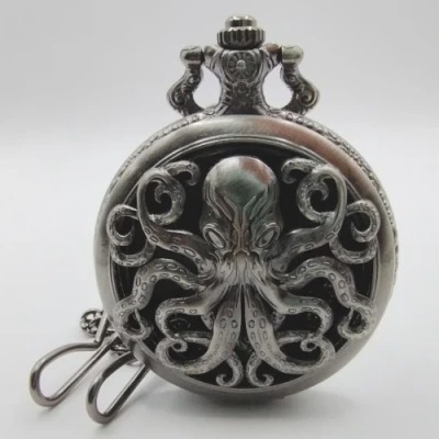 Porte-dés en métal avec mini-kit polyédrique: Cthulhu argenté avec pochette en suédine noire