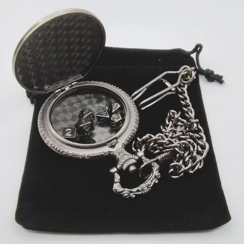 CANA-DICE - PORTE-DÉS EN MÉTAL AVEC MINI-KIT POLYÉDRIQUE: KRAKEN ARGENTÉ CAVERNEUX AVEC POCHETTE EN SUÉDINE NOIRE - DES JDR est catégorisé dans JEUX DE RÔLES / ACCESSOIRES / DÉS en vente chez l'Imaginaire, un magasin-boutique et un site web spécialisé.