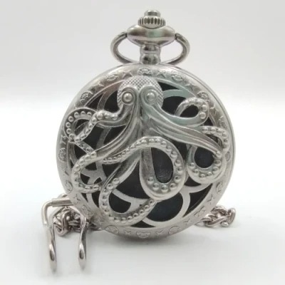 Porte-dés en métal avec mini-kit polyédrique: kraken argenté caverneux avec pochette en suédine noire
