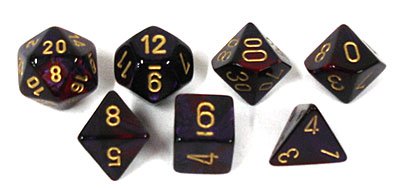 CHESSEX  -  ENSEMBLE DE 7 DÉS JDR  # GEMINI  -  ENSEMBLE DE 7 DÉS JDR, GEMINI MAUVE ET ROUGE AVEC OR