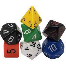 | Best priced dice I have seen at the store. Each come in a different colour so it is easy for newer players to remember them by colours rather than shapes. | |
