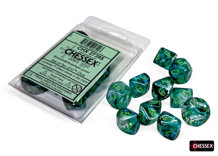 CHESSEX - ENSEMBLE DÉS 10D10, BOREALIS TURQUOISE VARECH & VERT PÂLE - LUMINEUX - ENSEMBLE DÉS 10D10 BOREALIS est catégorisé dans JEUX DE RÔLES / ACCESSOIRES / DÉS en vente chez l'Imaginaire, un magasin-boutique et un site web spécialisé.