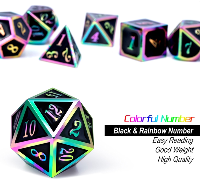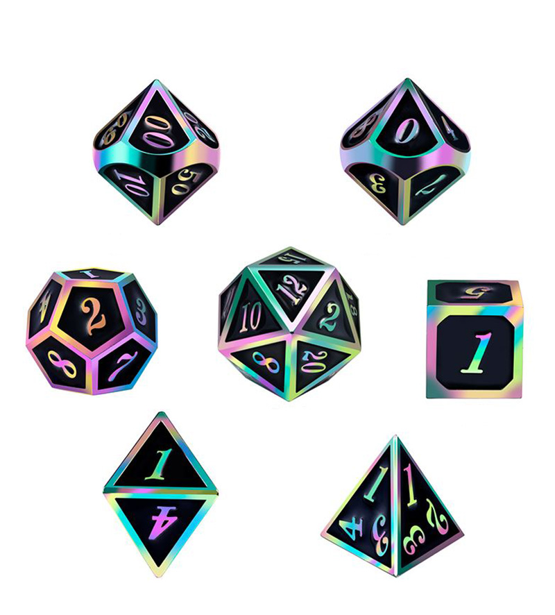 DICE HABIT - ENSEMBLE 7 DÉS JDR # METAL & ENAMEL - MÉTAL & ÉMAIL , NOIR IRIDESCENT