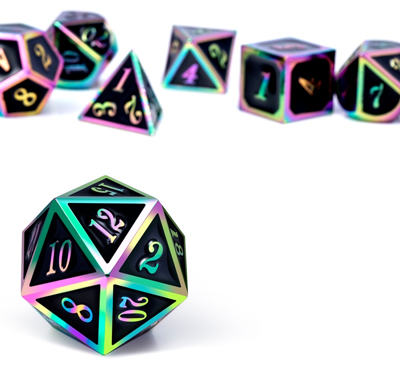 DICE HABIT - MÉTAL & ÉMAIL , NOIR IRIDESCENT - ENSEMBLE 7 DÉS JDR METAL & ENAMEL est catégorisé dans JEUX DE RÔLES / ACCESSOIRES / DÉS en vente chez l'Imaginaire, un magasin-boutique et un site web spécialisé.