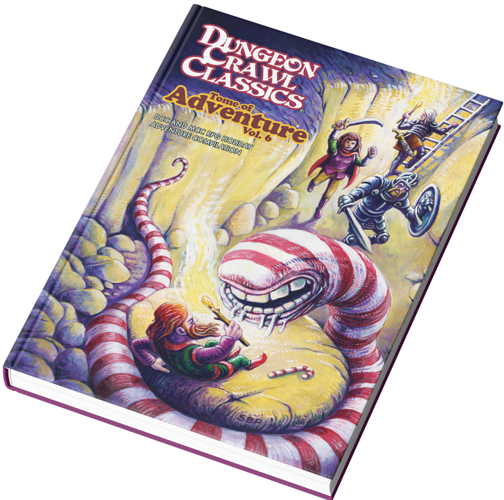 Tome of Adventure Vol. 6: Holiday Adventures collects eight adventures from the DCC Holiday line of adventures, suitable for use as thematic seasonal adventures or inserted in an ongoing Dungeon Crawl Classics campaign.