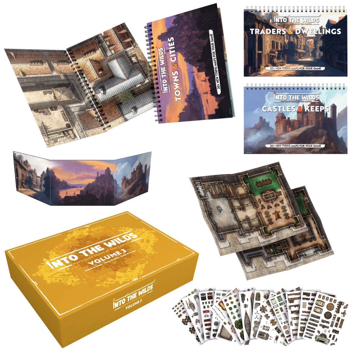 INTO THE WILDS - BATTLEMAP BOOKS, BATTLEMAP BOOKS, VOLUME 3 (CASTLES & KEEPS, TOWNS & CITIES, TRADERS & DWELLINGS) - BATTLE MAP est catégorisé dans JEUX DE RÔLES / SUPPORT / NON 5E en vente chez l'Imaginaire, un magasin-boutique et un site web spécialisé.