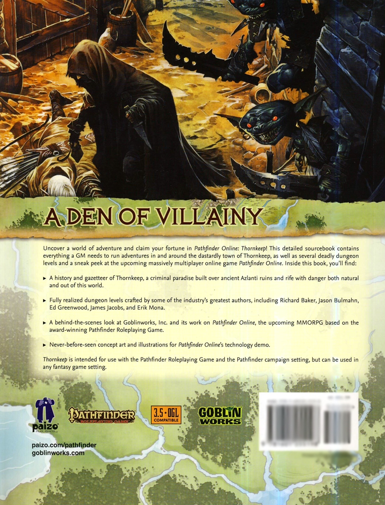 Uncover a world of adventure and claim your fortune in Pathfinder Online : Thornkeep! This detailed sourcebook contains everything a GM needs to run adventures in and around the dastardly town of Thornkeep, as well as several deadly dungeon levels and a sneak peek at the upcoming massively multiplayer online game Pathfinder Online. Inside this book, you'll find :