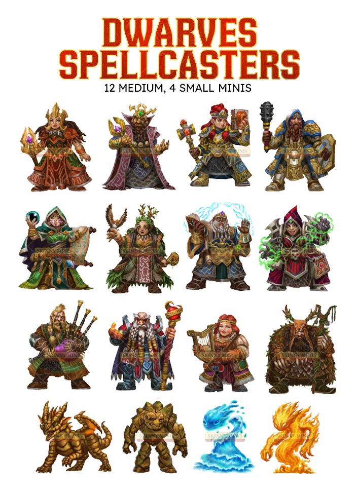 SKINNY MINIS 2D - FIGURINE JDR - DWARVES SPELLCASTER