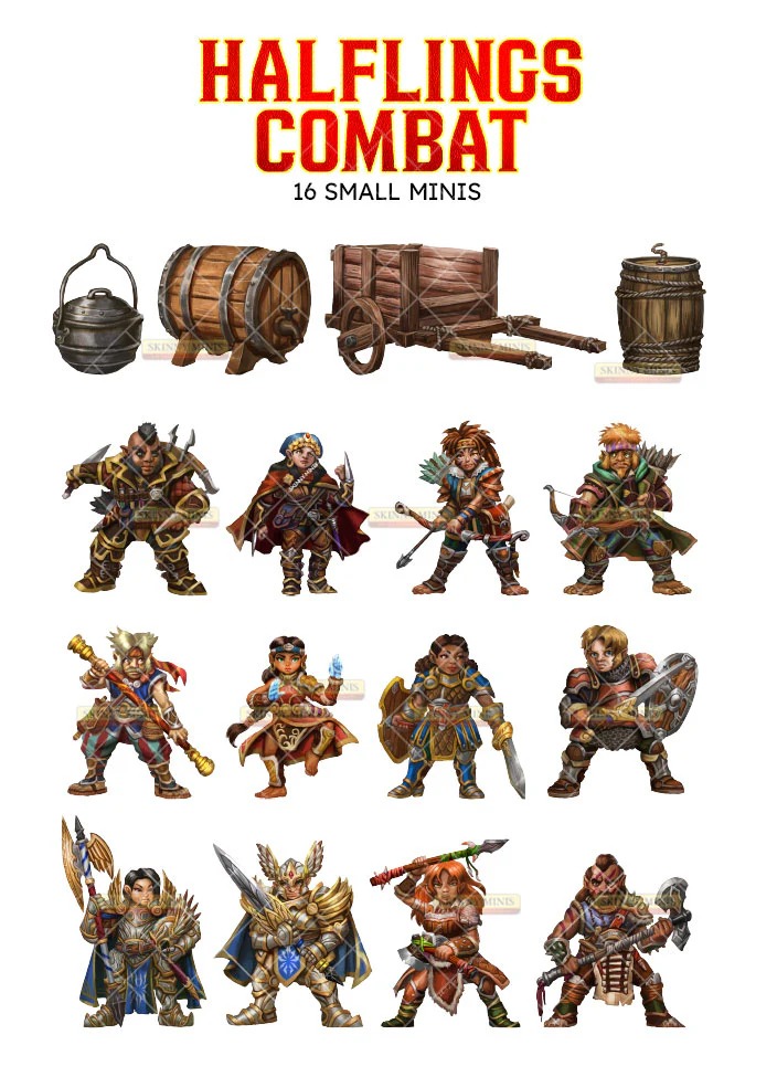 SKINNY MINIS 2D - FIGURINE JDR - HALFLING COMBAT