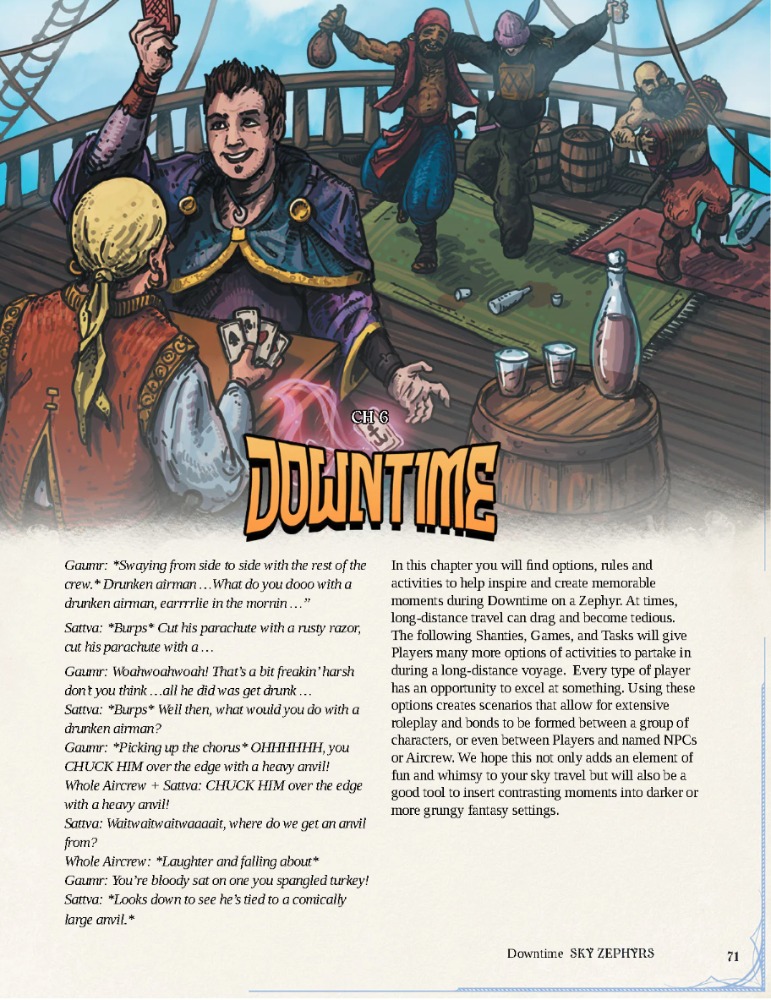 Vehicle Combat in the sky can become an ever-changing and strategic chess match where Zephyrs and their crews are trying to outwit, outmaneuver and destroy each other. Knowing the correct moment to board or Ram an enemy Zephyr, or even Repair a Compromised Station, could be the difference between life and death for your players and their Aircrew. Using various well-linked and well-timed combinations of the combat mechanics your players can accomplish incredible aerial feats never before seen by a creature.