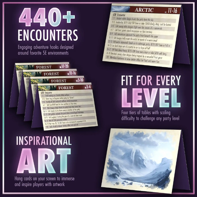 - Always Ready for Adventure: Have an engaging and balanced encounter tailored to your favorite environments at any moment.