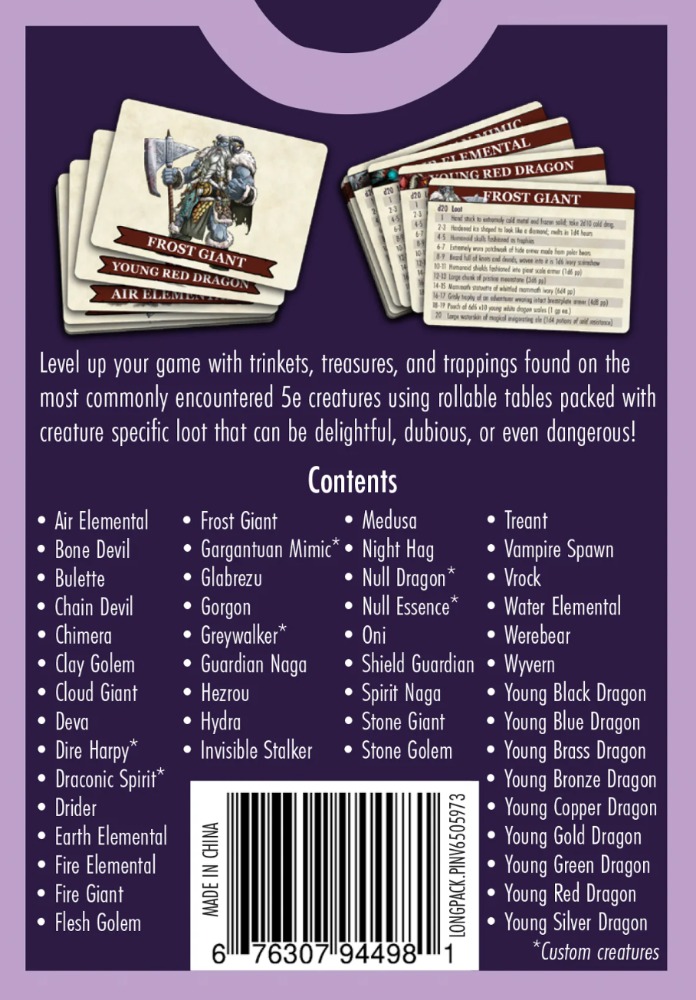 - Loot Your Favorite Monsters: Discover fun and flavorful trinkets, treasures, and other trappings uniquely found on over 140 of Fifth Edition’s most iconic creatures.