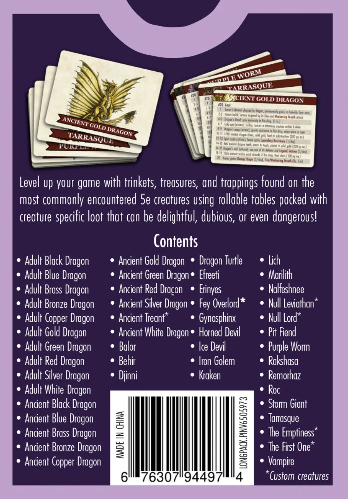 - Loot Your Favorite Monsters: Discover fun and flavorful trinkets, treasures, and other trappings uniquely found on over 140 of Fifth Edition’s most iconic creatures.