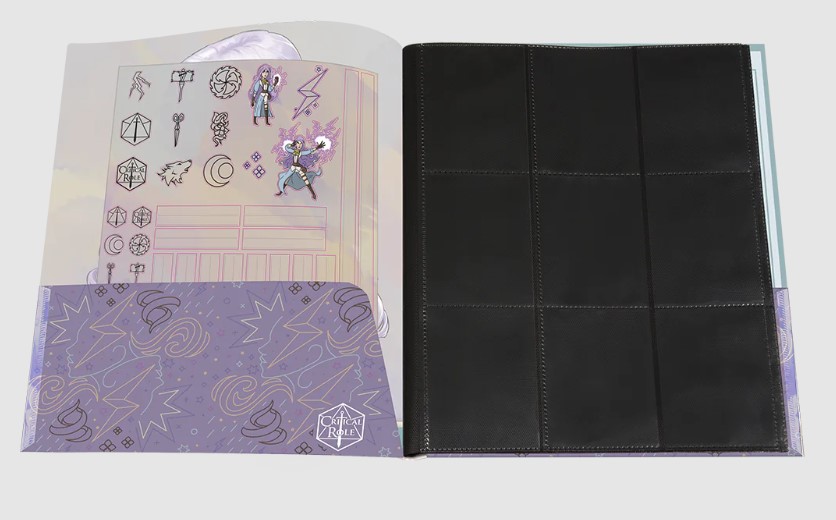 Organize and store your notes, character sheets, and spell cards in a RPG Folio for Critical Role! Each folio features a vibrant full-art cover and internal pockets, including 10 single-pocket pages for character sheets and notes, and two 9-pocket pages fpplicationNameFROM ? ( ?3B????