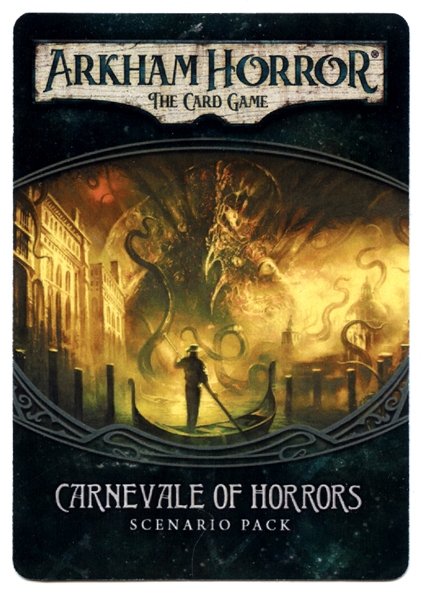 The sixty-twocard, standalone scenario in Carnevale of Horrors transports you to a city of masks and mysteries. While revelers throngthe streets of Venice, masked conspirators advance their sinister agendas, shadows envelop the city, and something terrible rises from the lagoon…