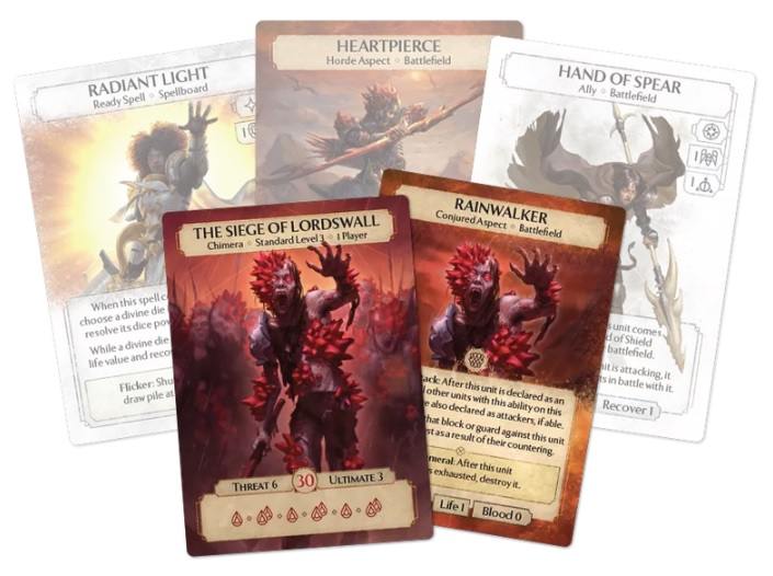 | L’extension The Siege of Lordswall intensifie l’aspect coopératif d’Ashes Reborn : la Marée d’esclaves contrôlés par des cristaux rouges pousse les joueurs à coordonner leurs défenses, car la horde progresse de façon implacable vers les portes de la cité. L'extension peut manquer d’originalité par rapport aux autres : les Phoenixborn comme Odette, Xander, Dimona et James sont repris, ce qui limite le renouvellement du roster, et la mécanique reste très “horde contre défense”, sans beaucoup de variations. La tension monte vite, mais la victoire dépend fortement du tirage des cartes : mal utilisé, le deck divin peut te laisser à court de ressources dans les moments critiques. | |
