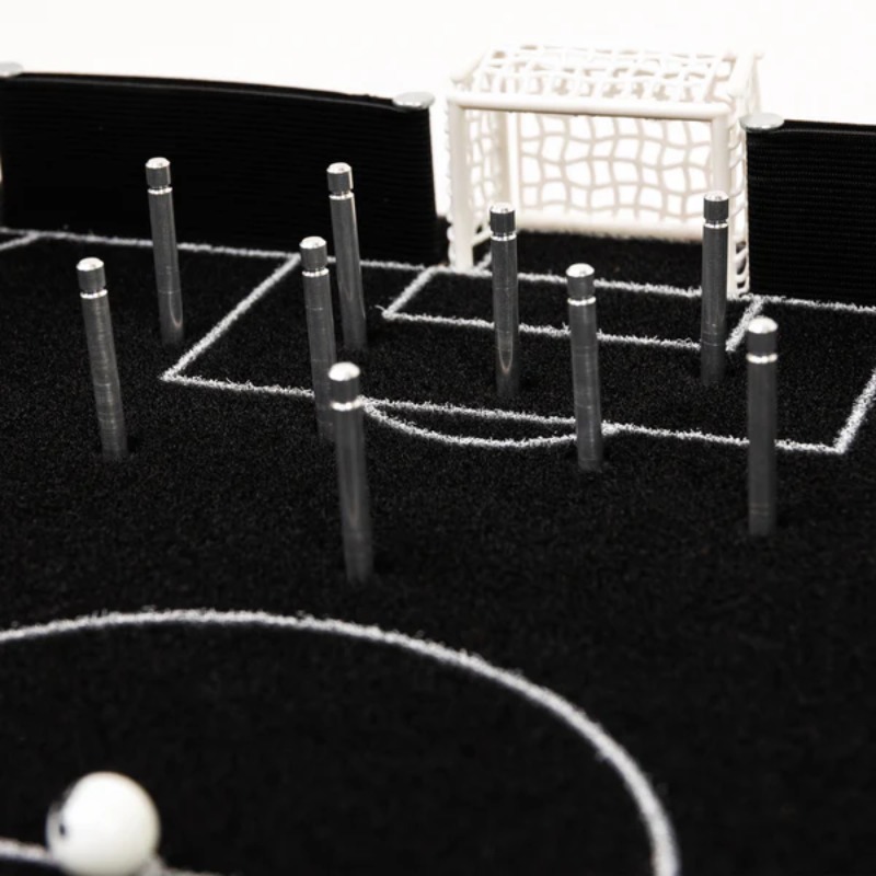 Améliorez votre jeu avec le Binho Classic : Black Turf, une version épurée et minimaliste du célèbre finger soccer. Conçue pour la précision, la performance et un look audacieux, cette édition présente un terrain de jeu entièrement noir avec des buts assortis et des figurines de joueurs en métal argenté, offrant aux joueurs un environnement saisissant et contrasté, idéal pour des matchs intenses.