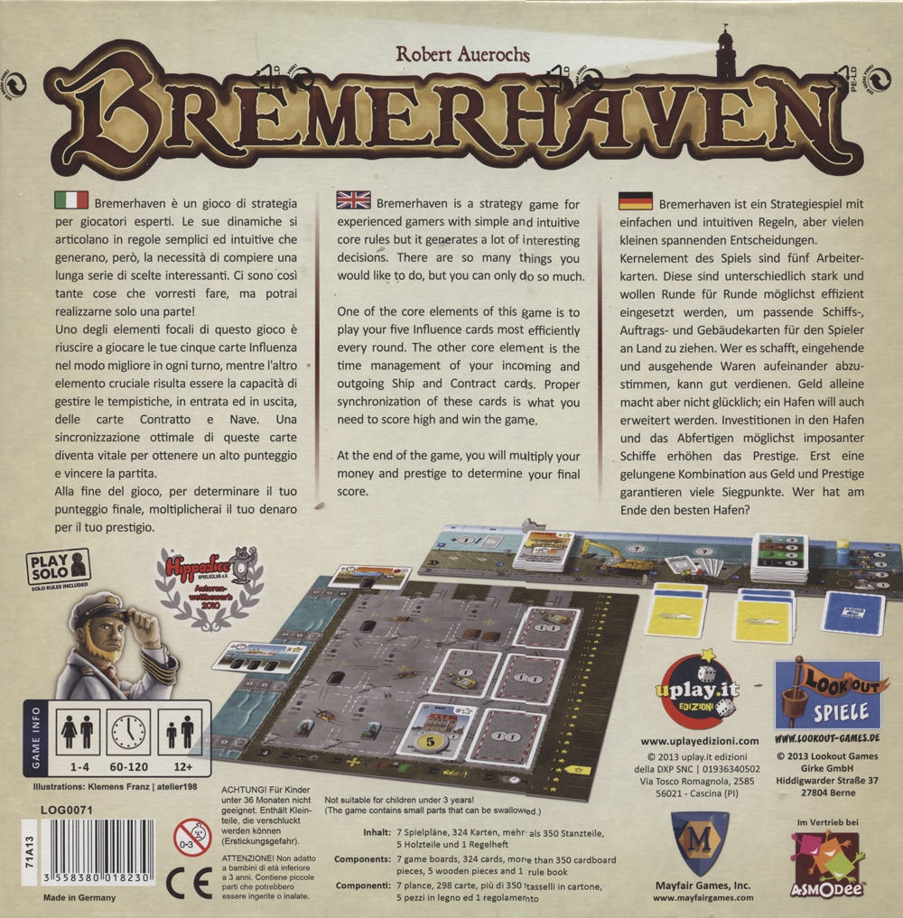 Bremerhaven is a strategy game for experienced gamers with simple and intuitive core rules but it generates a lot of interesting decisions. There are so many things you would like to do, but you can only doso much.