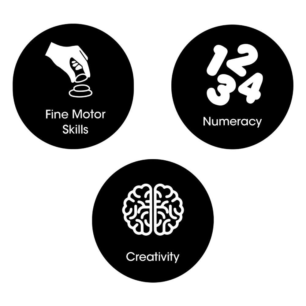 Avec ses jetons colorés et ses cartes d’activité illustrées, ce jeu invite les enfants à explorer le tri, les motifs et le dénombrement tout en s’amusant. Conçu pour stimuler la motricité fine et la coordination œil-main, il est parfait pour soutenir les apprentissages au préscolaire.