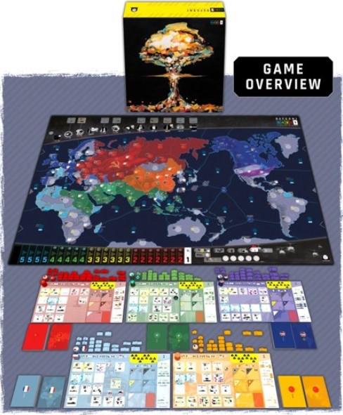 Ce jeu de plateau stratégique se caractérise par un gameplay qui change en fonction du nombre de joueurs, allant d’un jeu Frontal Shock Game à 2 joueurs à un jeu semi-coopératif à 4 joueurs, se terminant par un jeu d’objectif secret dans la version 5 joueurs. Le jeu se joue en cinq phases différentes: initialisation, R & D, politique, production, atomique et guerre.