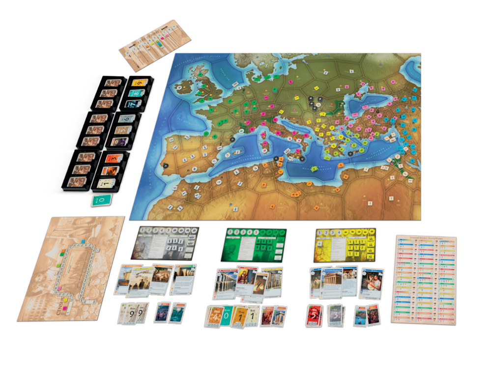 This standalone game can be combined with Mega Empires The East to accommodate up to 18 players or to create smaller variant scenarios with just 3 or 4 players. This flexibility makes Mega Empires The West appealing to both casual players and expert gamers.