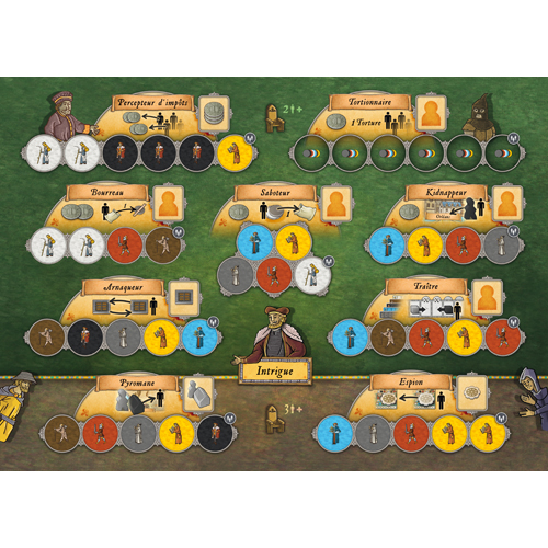 Intrigue : un plateau de remplacement pour les actes bénéfiques vous permettant d'attaquer et de gêner vos adversaires, voire de les voler.