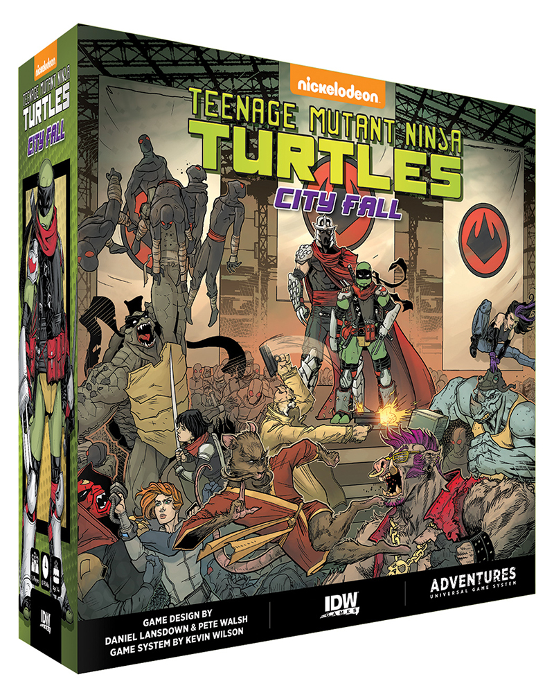 It's dark times for the Teenage Mutant Ninja Turtles! The Shredder has seized control of the city and worse, he's brainwashed Leonardo into joining the Foot Clan! It's time to add more heroes to the fight! Take up arms as Splinter, April, Old Hob, Angel, or Slash and help the Turtles take back the city! Teenage Mutant Ninja Turtles Adventures: City Fall is a scenario-driven miniatures role-playing game created in IDW's Adventures Universal Game System. Play as one of five NEW heroes or take on the role of the Shredder and lead the Foot to victory, with his new "chunin" and secret weapon, Dark Leo. This all-new entry into the Adventures Universal Game System features a brand new campaign and two different modes of play: 1 vs. Many and fully Co-operative! Each Adventures game is both stand-alone and compatible with other games in the system! Mix and match characters from each game to create custom scenarios!