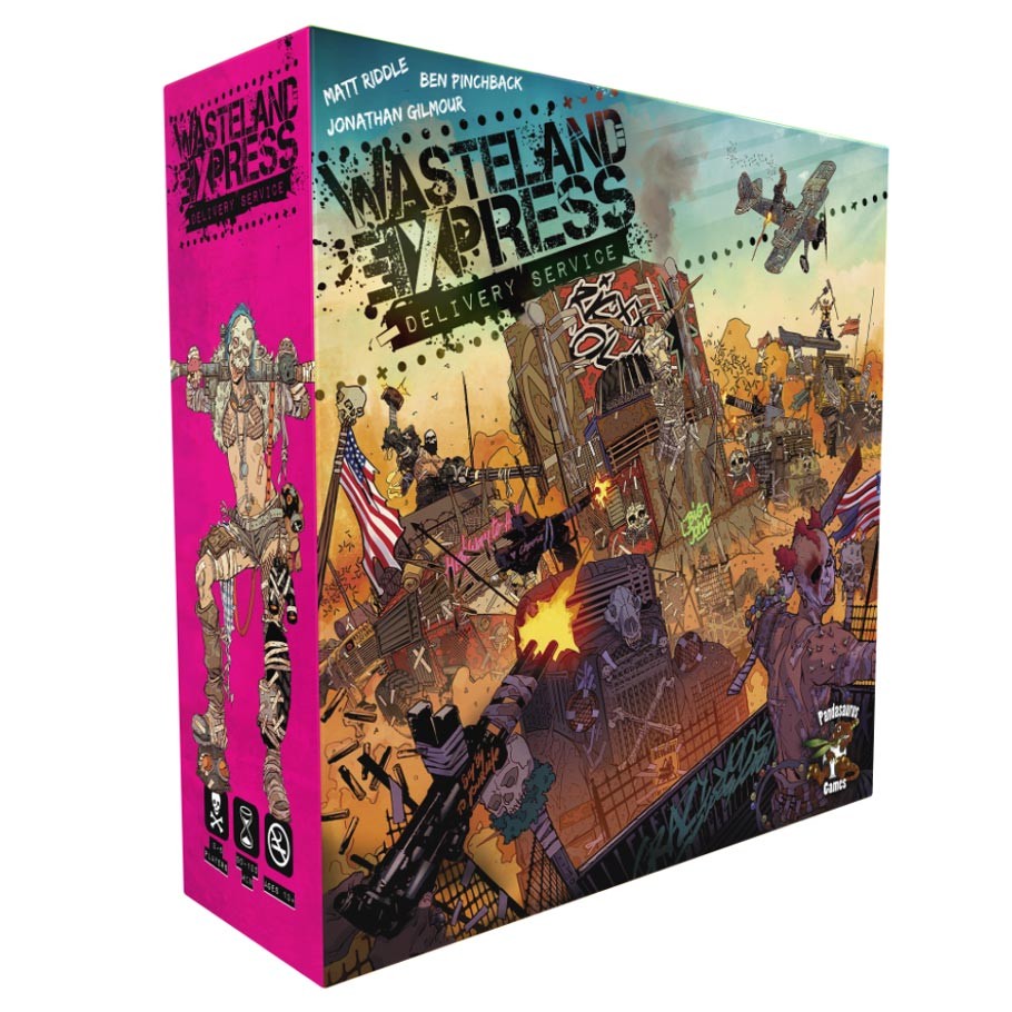 Wasteland Express Delivery Service is the depraved brainchild of a superstar team of acclaimed game designers: Jon Gilmour (Dead of Winter), Matt Riddle (Fleet, Morocco), and Ben Pinchback (Fleet, Morocco), brought to technicolor life by award-winning comic artist Riccardo Burchielli (DMZ, Batman Black and White) to create the perfect marriage of emergent thematic gameplay and balanced strategy.