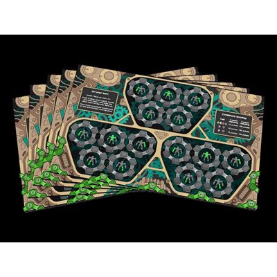 Widget’s Workshop is a “drop-style,” spatial set collection, card crafting board game. You start the game by dropping 80 part cards onto the table, creating a giant, messy pile of parts in the center. Players take turns pulling parts from the pile, using one finger only, attempting to find the best parts for their robots and golems under construction in their workshop bays. Once a bay contains each of the 5 required pieces, the parts are combined to reveal a unique construct and its name.