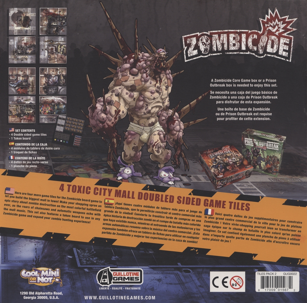 4 tuiles recto verso pour rajouter à vos jeux zombicide .Il s'agit de tuiles de la version toxic city mall avec une planche de tokens pour pourvoir Integer les mécaniques dans vos autres jeux zombicide