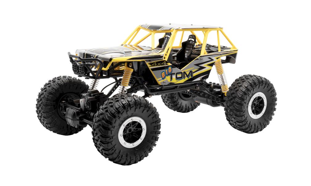 En plaçant les moteurs plus bas, le centre de gravité du Big Tom est plus bas et élimine le besoin d'arbres de transmission. Les lumières LED montées à l'avant éclairent le terrain dans des conditions de faible luminosité. La suspension à 4 bras avant et arrière permet une incroyable amplitude de mouvement qui permet à BIG TOM de s'attaquer à une grande variété d'obstacles.