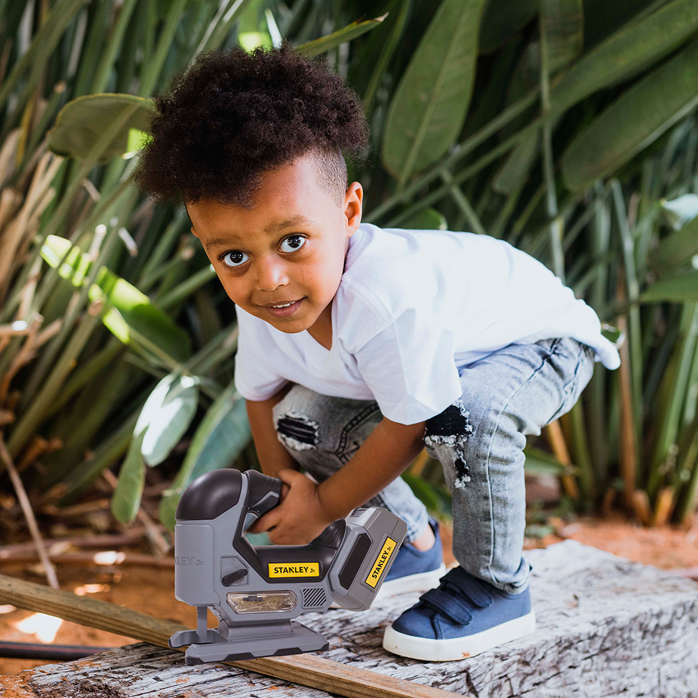 Les scies sauteuses électriques sont utilisées pour découper des formes et des courbes dans le bois, mais cela nécessite un gros outil et une lame bien aiguisée. Notre scie sauteuse à piles Stanley Jr est la réponse à ces défis, elle est conçue spécialement pour les enfants! Cela signifie qu'elle est faite pour des mains plus petites et sans lame tranchante. Mais ne vous inquiétez pas, elle s'allume, sonne et se sent comme une vraie scie sauteuse pour que votre enfant ne rate pas l'expérience.