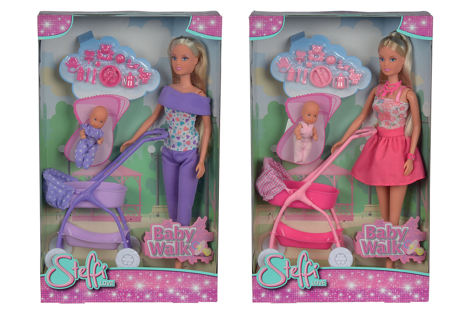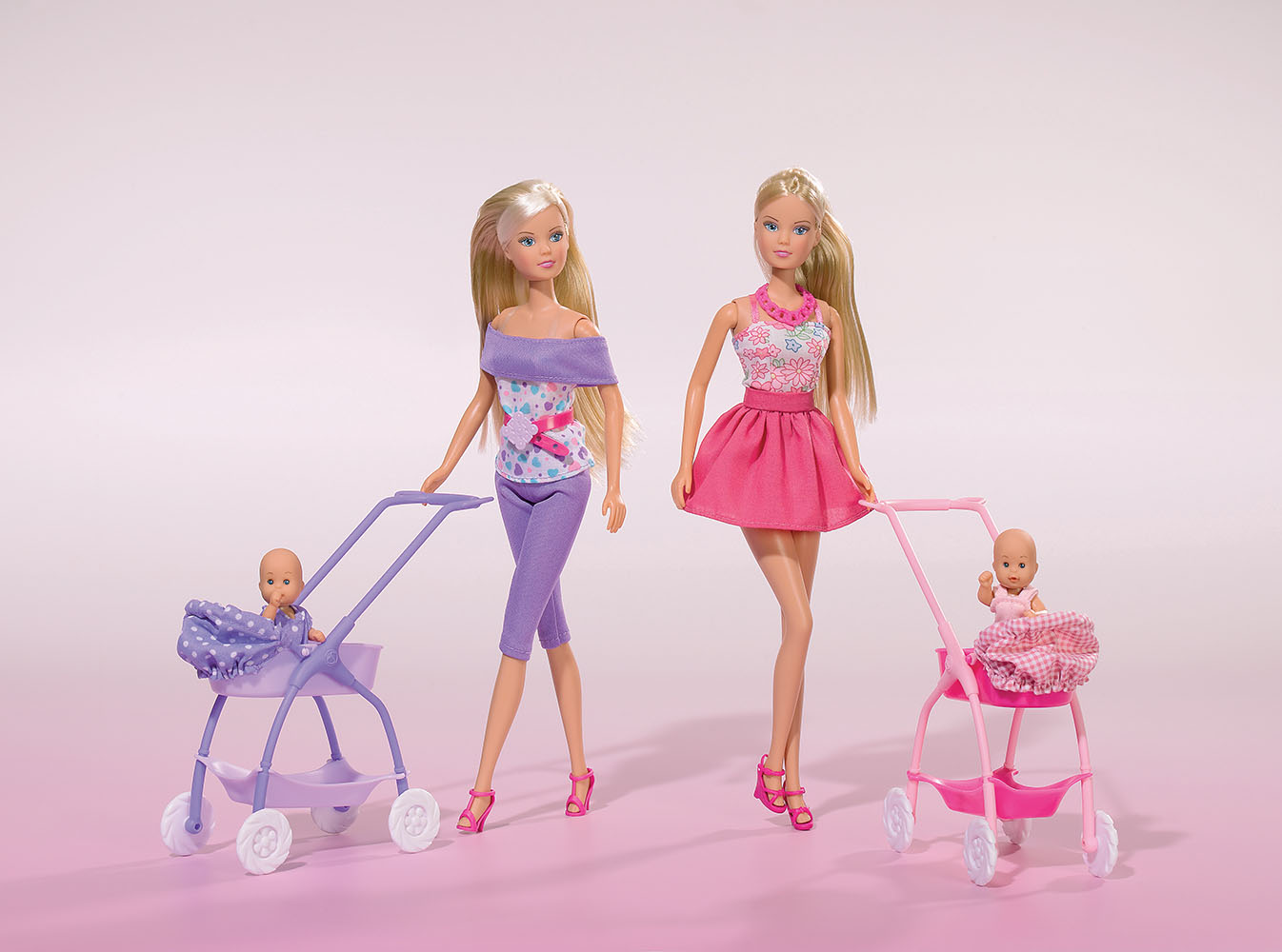 Steffi (29 cm) s'en va en promenade avec son nouveau-né (7 cm) dans la poussette.