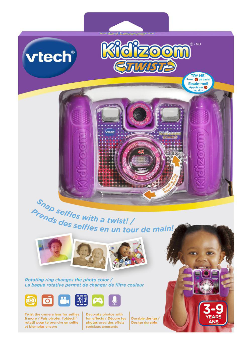 Capturez vos meilleurs égoportraits avec le Kidizoom® Twist, un appareil-photo pour enfant regorgeant de fonctionnalités intéressantes. Faites pivoter l'objectif de l'appareil photo afin de capturer l'égoportrait parfait ou prendre des photos de vos amis et votre famille n’importe où, et ce, facilement. Laissez votre créativité briller avec plus de 50 effets photo. Cinq jeux, enregistrez des vidéos, créez vos propres animations et bien plus encore. Utilisez le câble USB inclus pour vous connecter à votre ordinateur PC ou Mac pour le transfert de fichiers. Souriez et prenez vos meilleures photos!