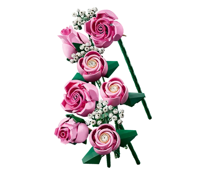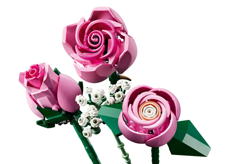 • Fleurs LEGO® – L’ensemble comprend 4 roses en pleine floraison, 4 rosesen éclosion et 4 boutons de rose, ainsi que 4 brins de gypsophile à fleurs blanches