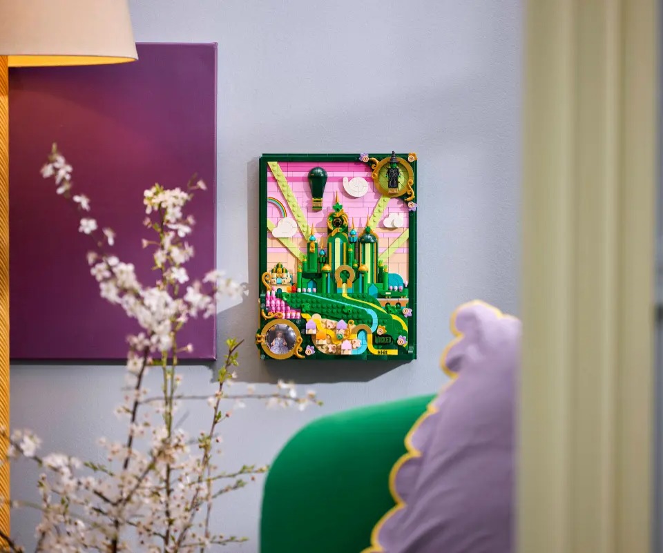 Décorez votre intérieur avec des moments magiques du film grâce à l’ensemble LEGO® Wicked Le tableau d’Emerald City (75685) coloré. Avec ses couleurs emblématiques – le rose représentant Glinda, le vert pour Elphaba et le jaune pour la route de briques jaunes – ce cadeau décoratif fantastique évoque les aventures des films Wicked.