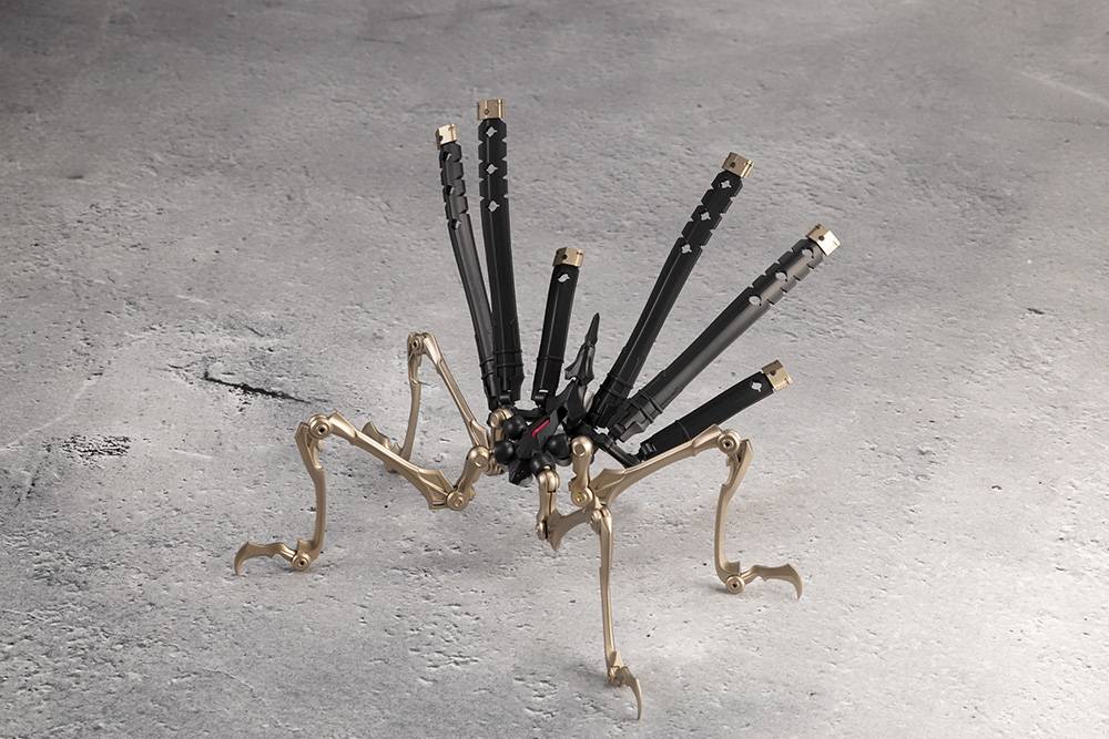 L’Extended Prosthetic Limb, ou membre prothétique dorsal, est entièrement articulé et peut être déployé ou replié. Sa base, montée sur un joint sphérique de 4 mm, peut être remplacée par un bras de personnage féminin MegaloMaria afin de créer une figure à six bras. L’armure en forme de jupe utilise un système à rotule et plusieurs axes de mouvement pour offrir une mobilité fluide et permettre de nombreuses poses d’action. Le membre prothétique peut aussi être retiré et utilisé comme un familier.